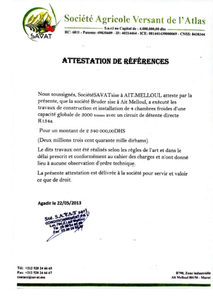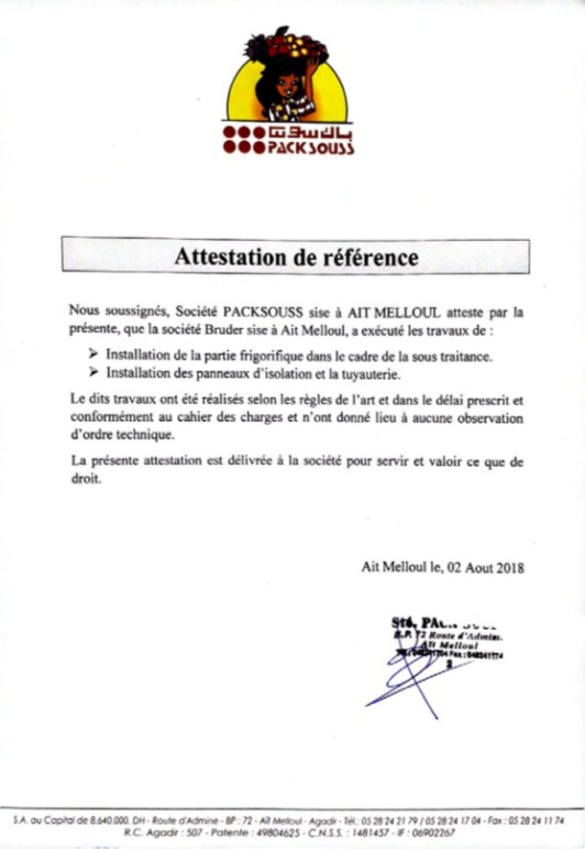 – Chambre frigorifique (+/-) de stockage et de conditionnement